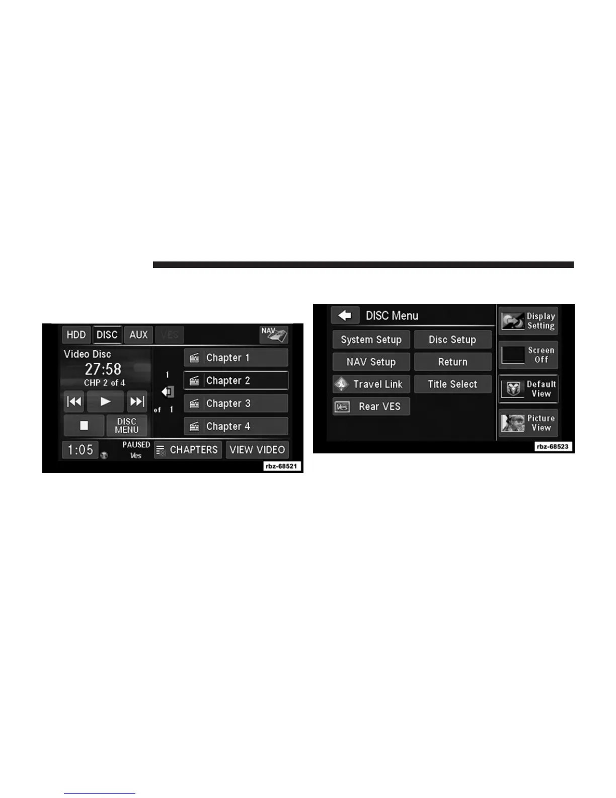 1. To view a DVD video on the rear VES™ radio screen,