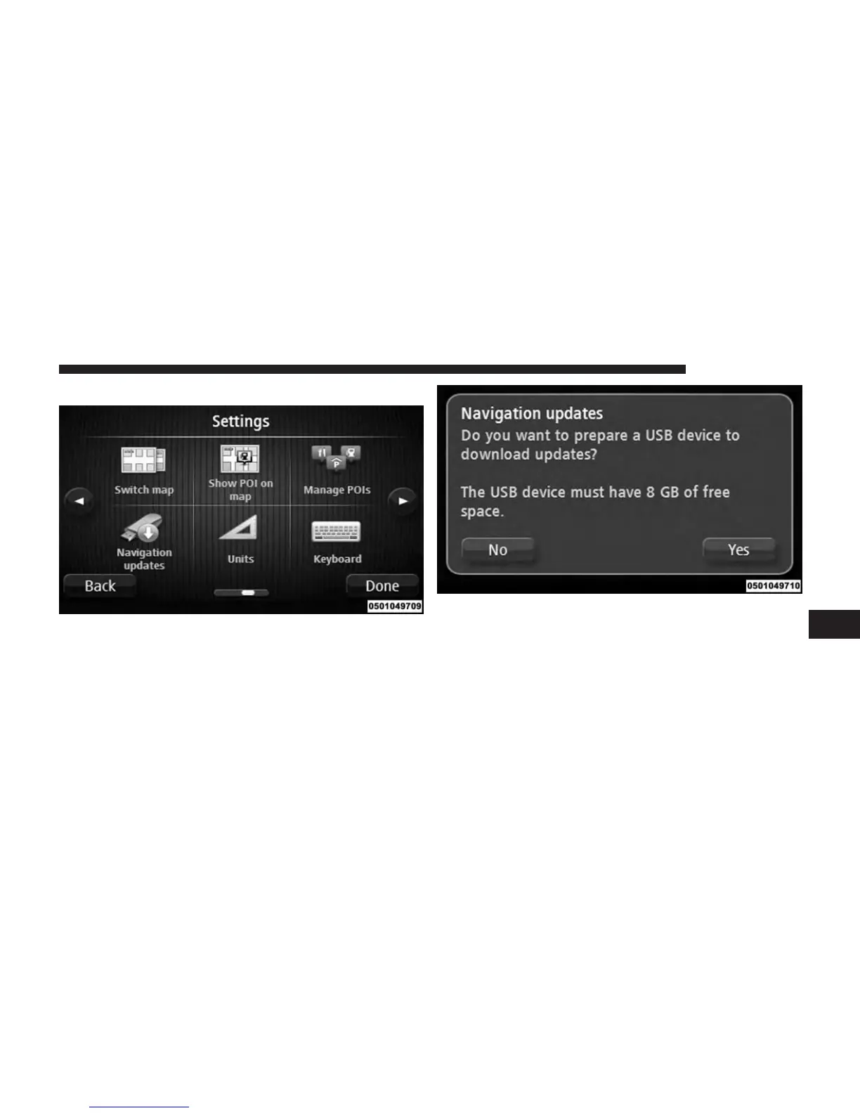 2. Select Navigation updates in the Settings menu.