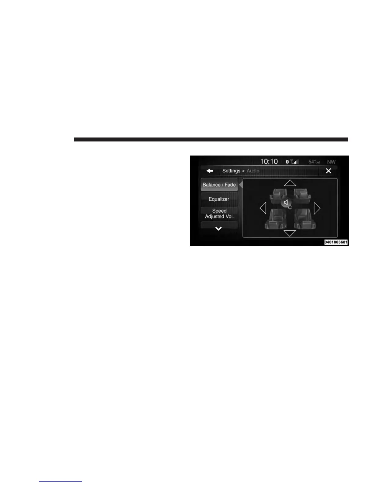 Press the “Balance/Fade” button to Balance audio be-