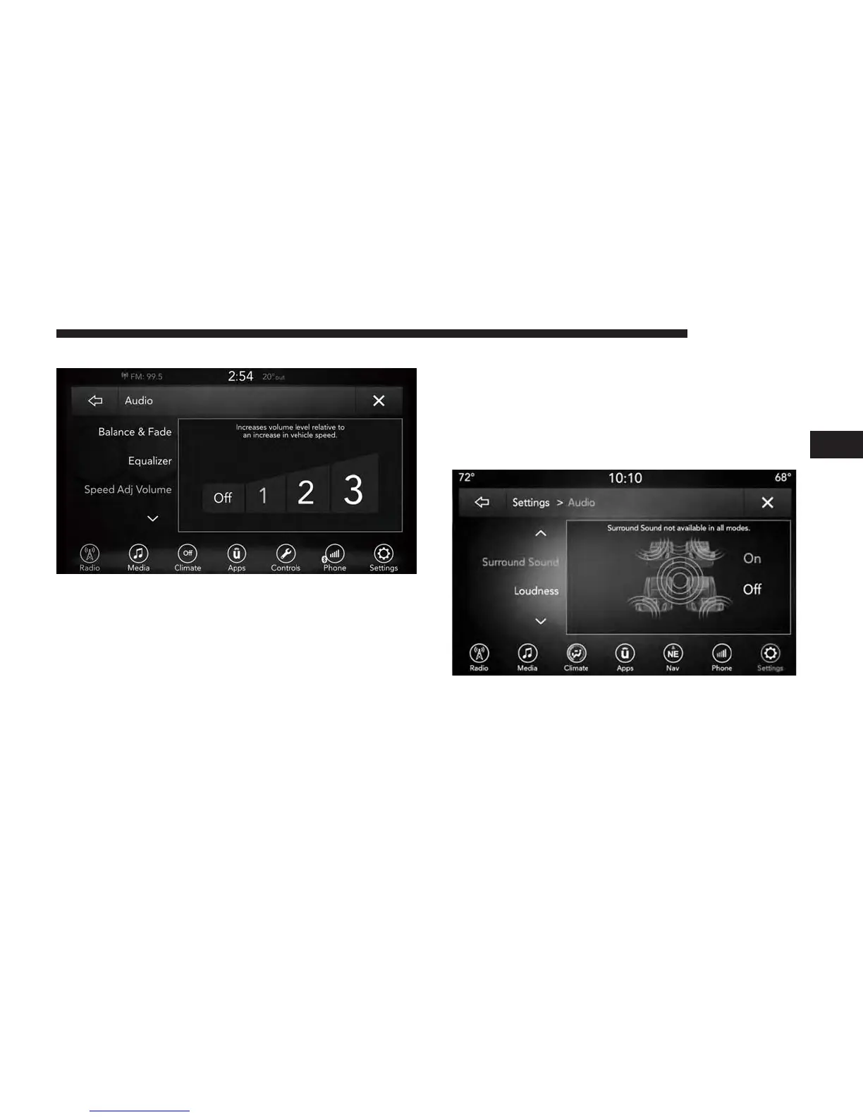 Press the “Speed Adjusted Volume” button on the touch-