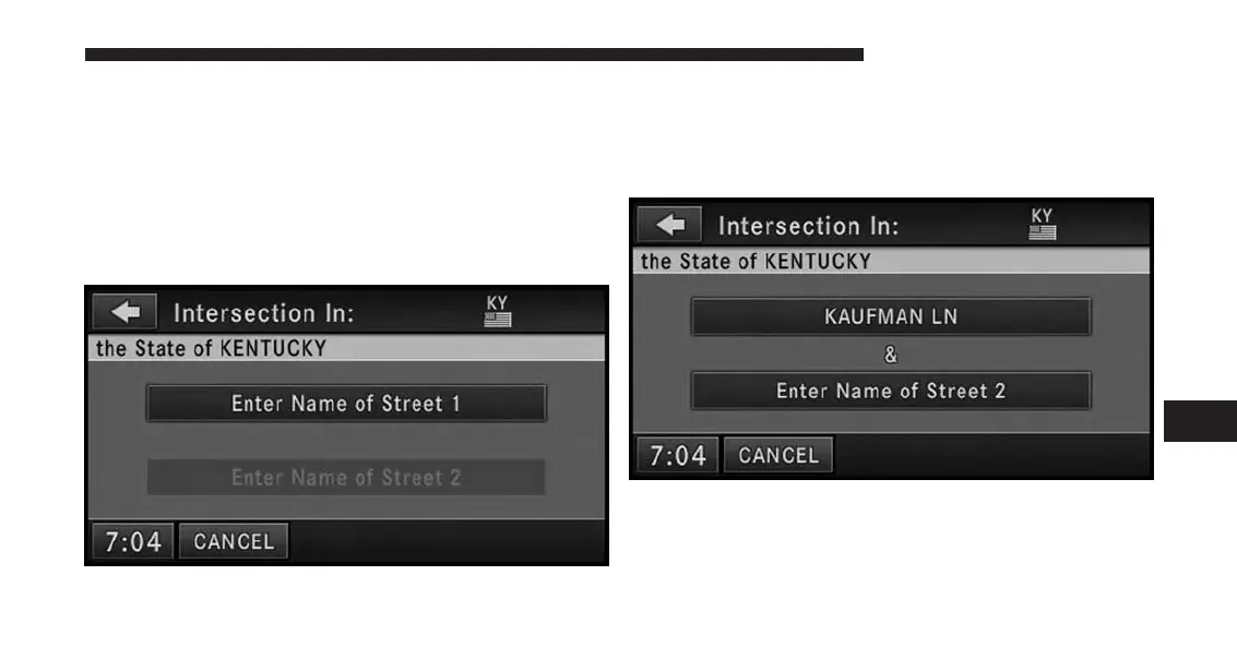 5. Touch the Enter Name of Street 2 soft-key to enter the