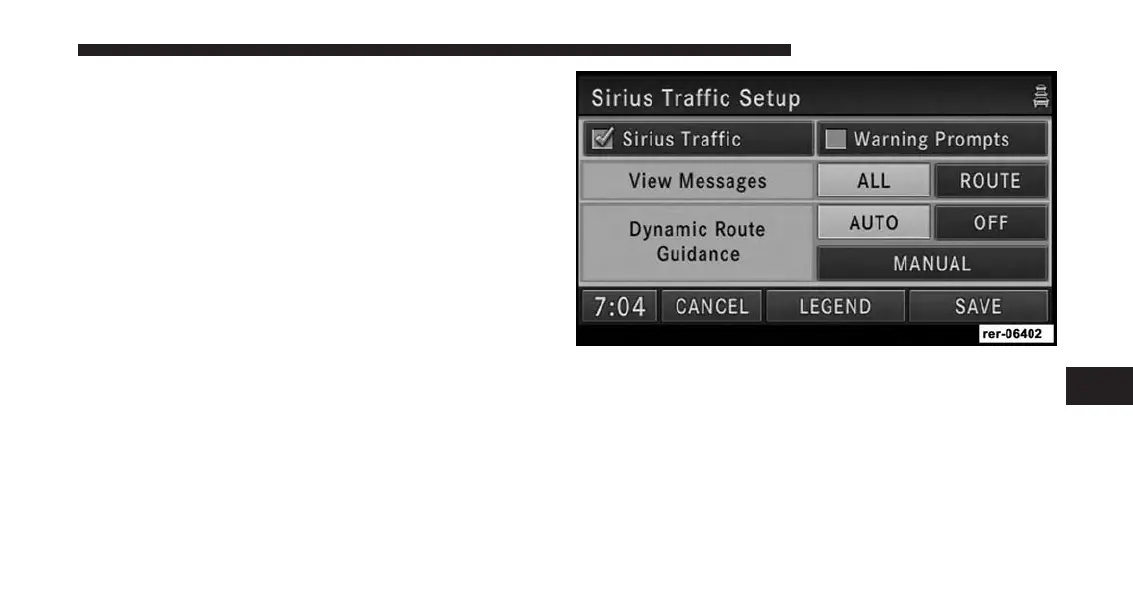 the SiriusXM Traffic function is active.