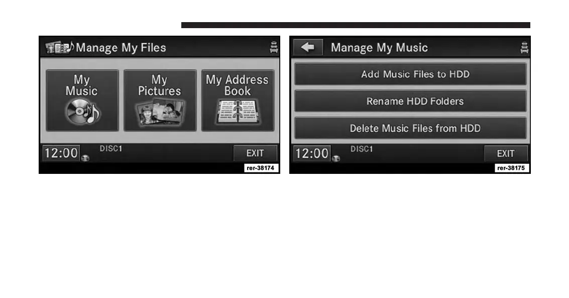 5. Touch the Add Music Files to HDD soft-key.