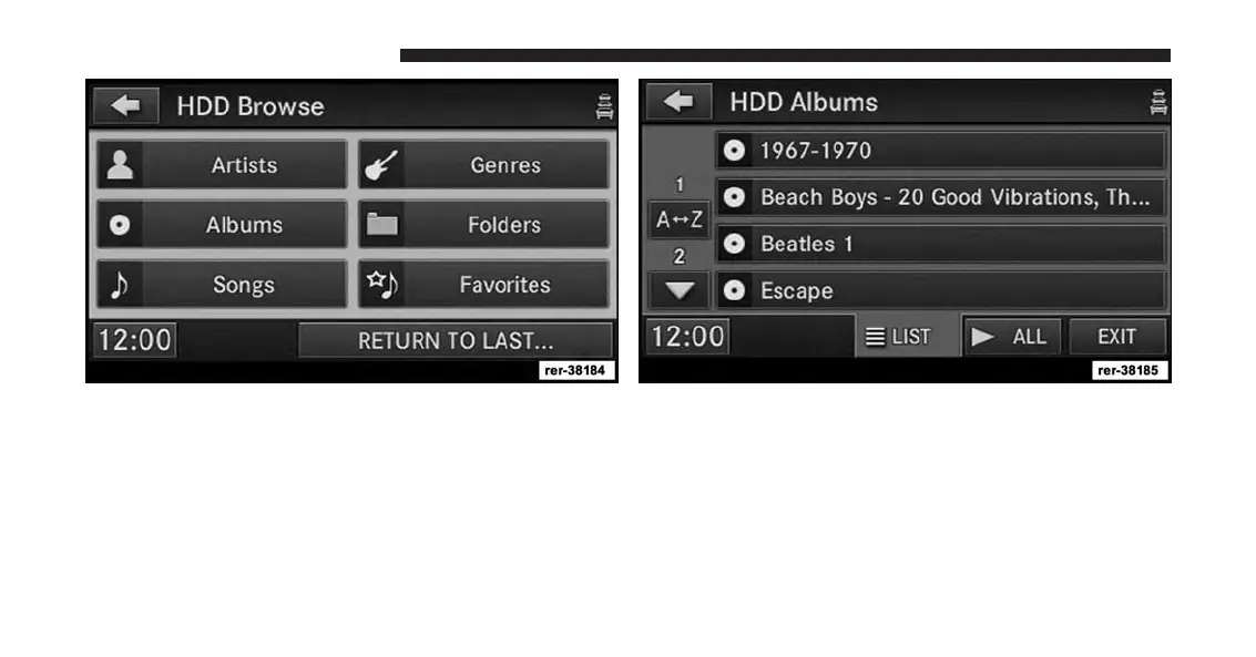 1. For this example, touch the Albums soft-key. 2. Touch a soft-key with the desired album name to play