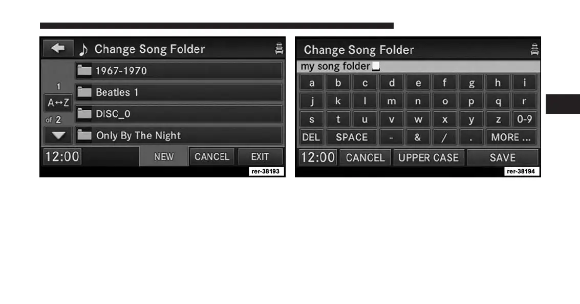 4. Touch the NEW soft-key to create a new folder. 5. Name the folder and touch the SAVE soft-key.