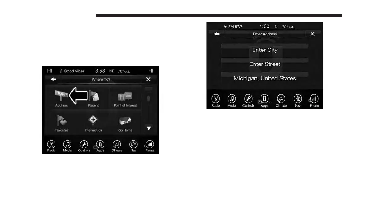 To enter a destination by Address, follow these steps: