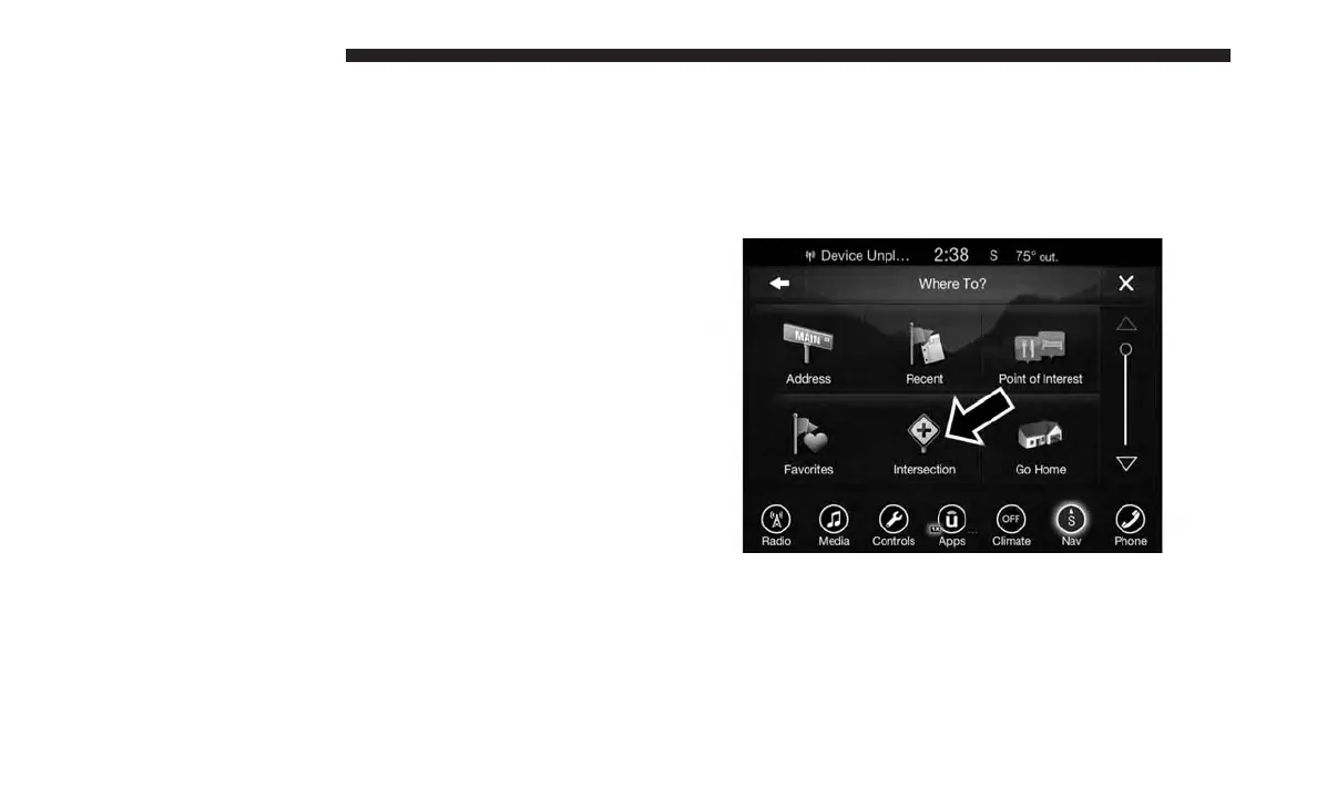 button on the touchscreen, then press the “Intersection”