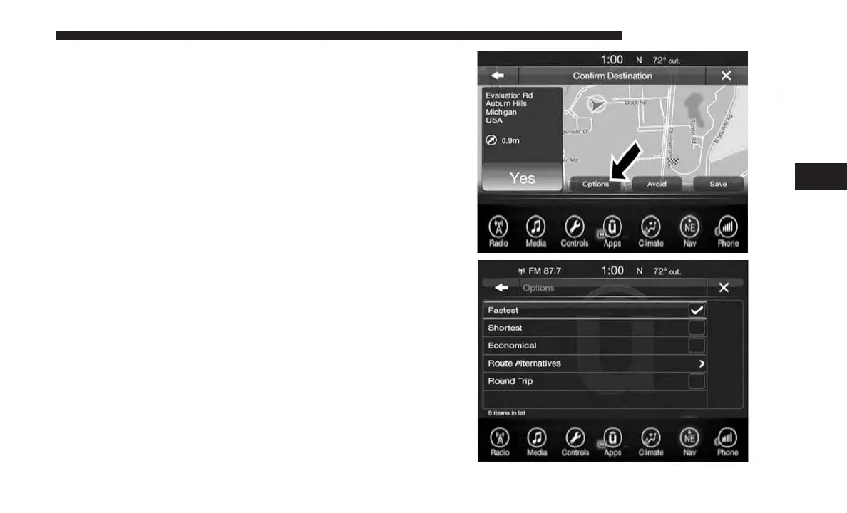 to display a list of options to alter your route. To make a