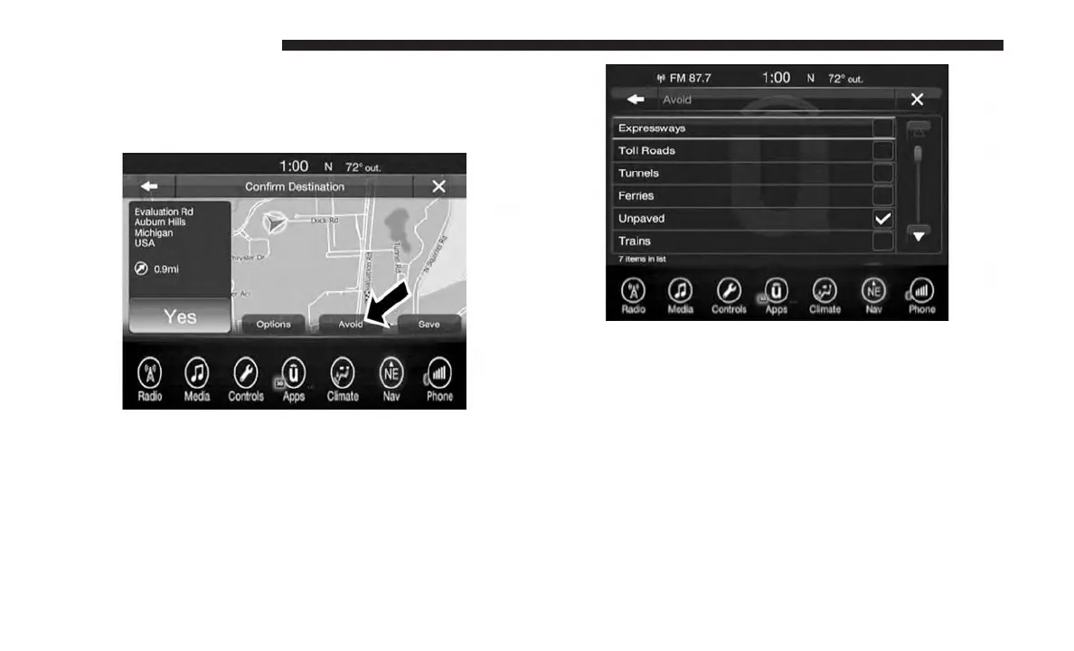 • Avoid – Press the “Avoid” button on the touchscreen to