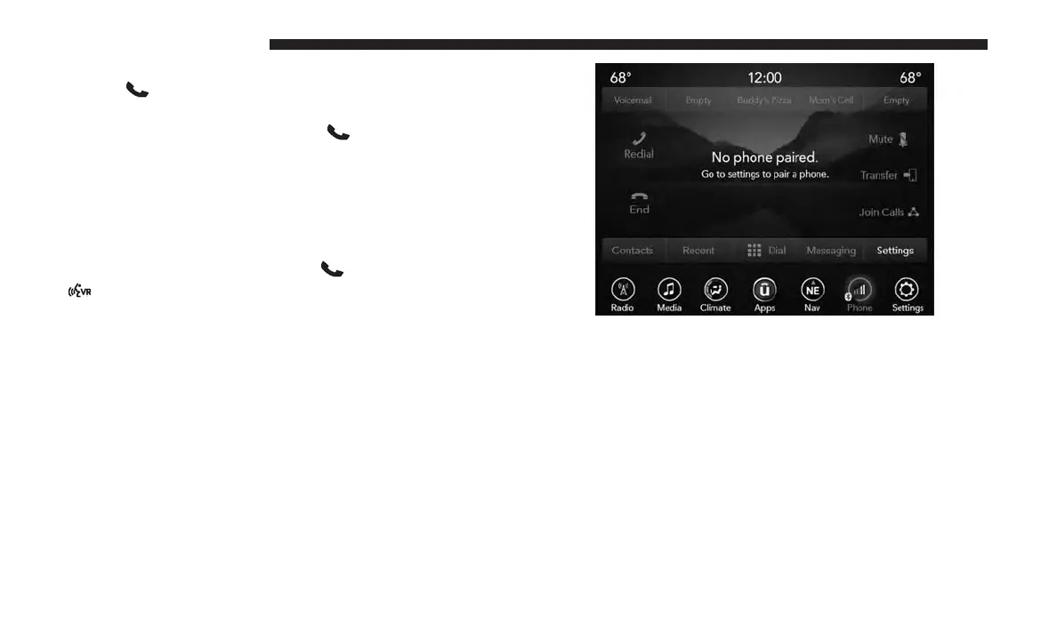 To activate the Uconnect Phone from idle, simply push the