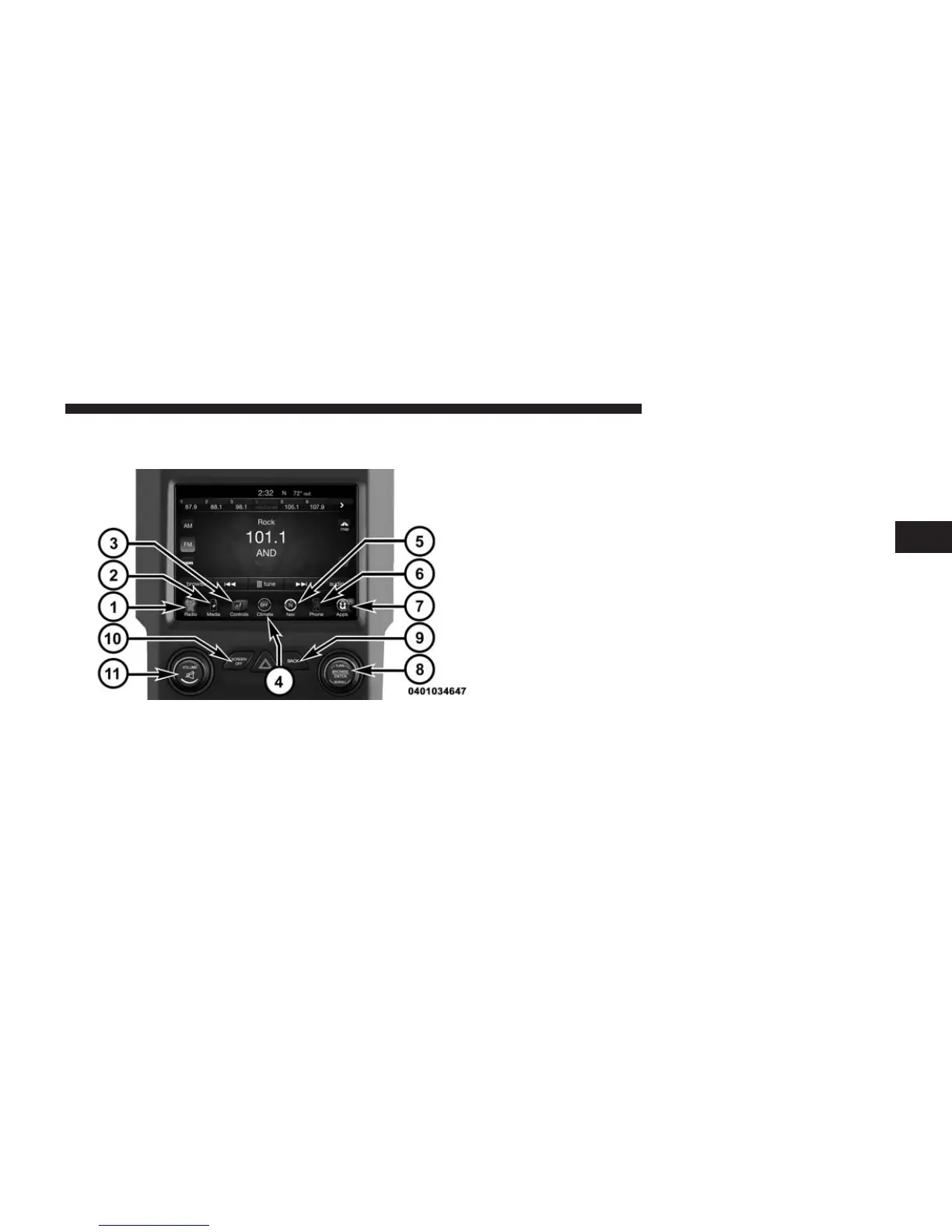 buttons on the touchscreen in Radio Mode.