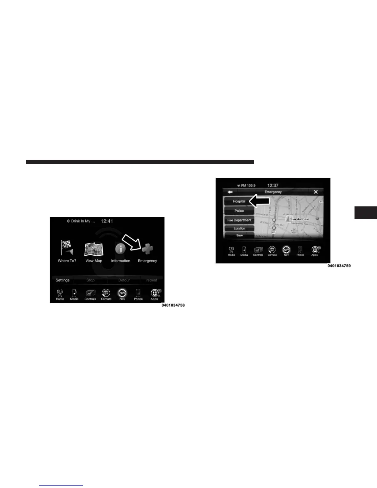 1. While in the Nav Main Menu, press the “Emergency”