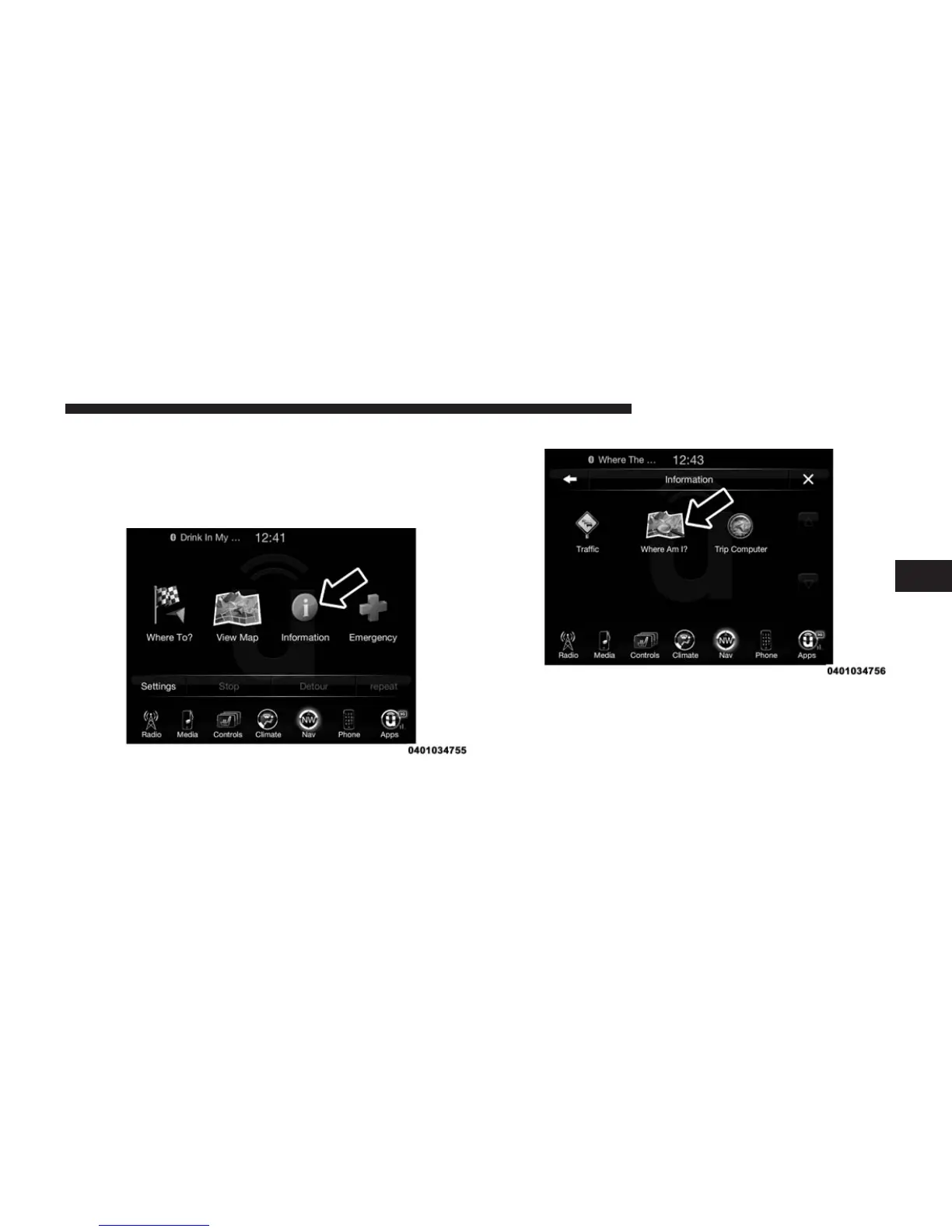 1. While in the Nav Main Menu, press the “Information”