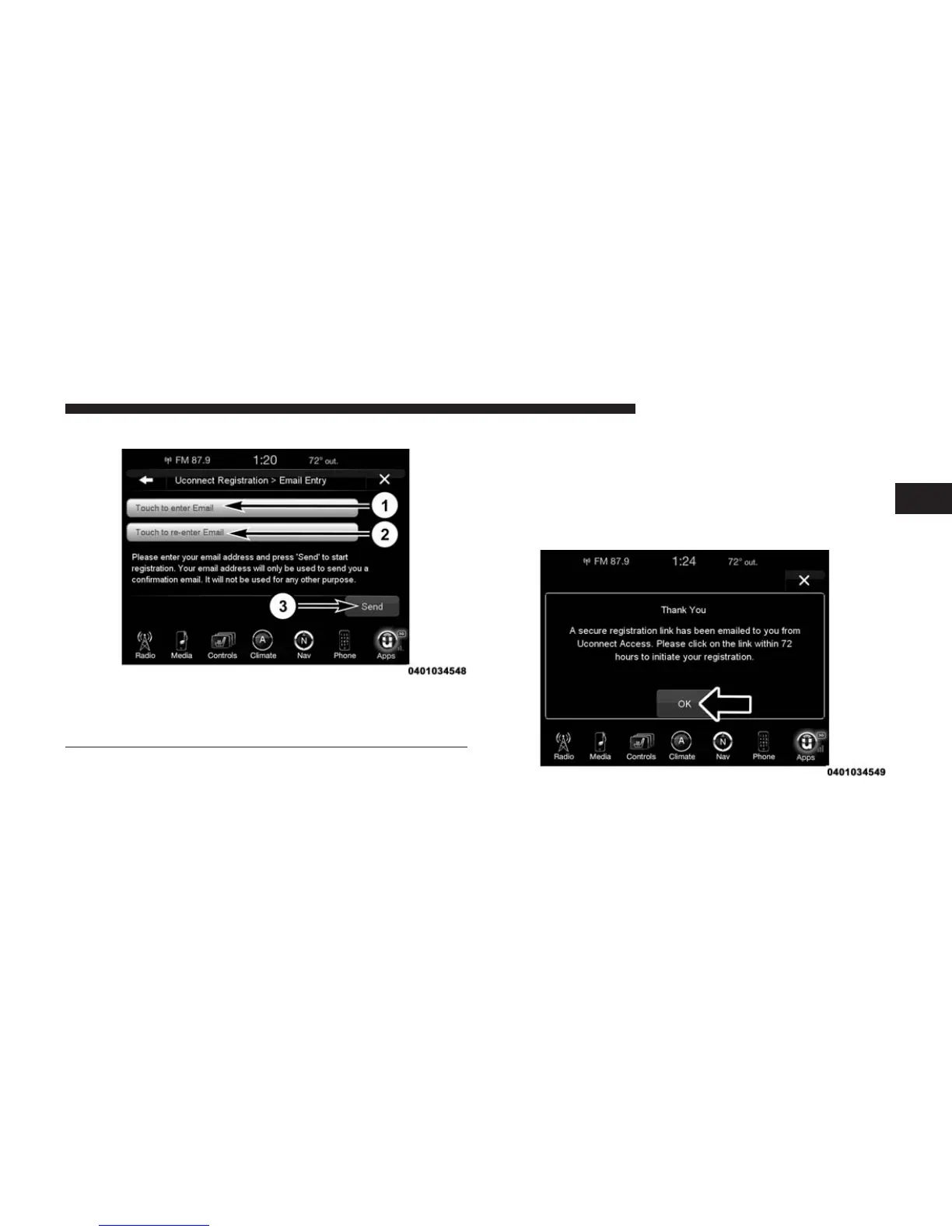 4. Enter your email address into the radio touchscreen. 5. This message will display on the touchscreen indicat-