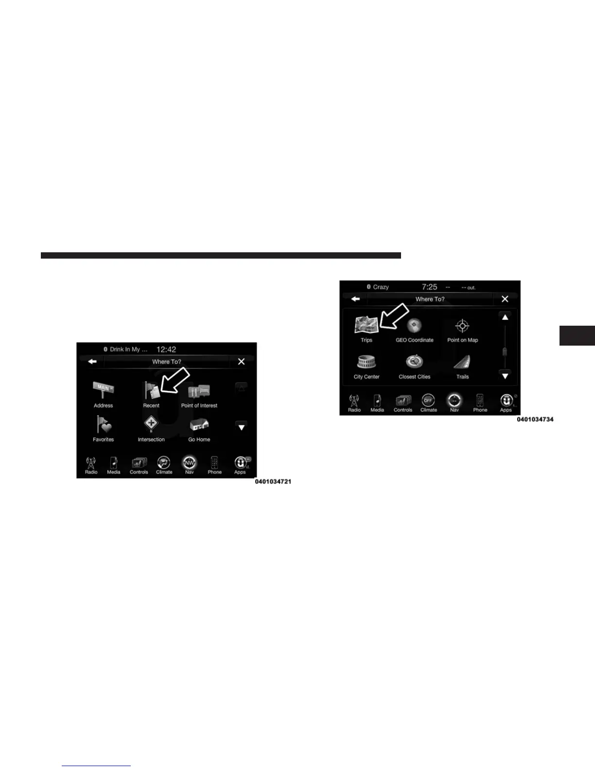 2. Press the “Trips” button on the touchscreen.