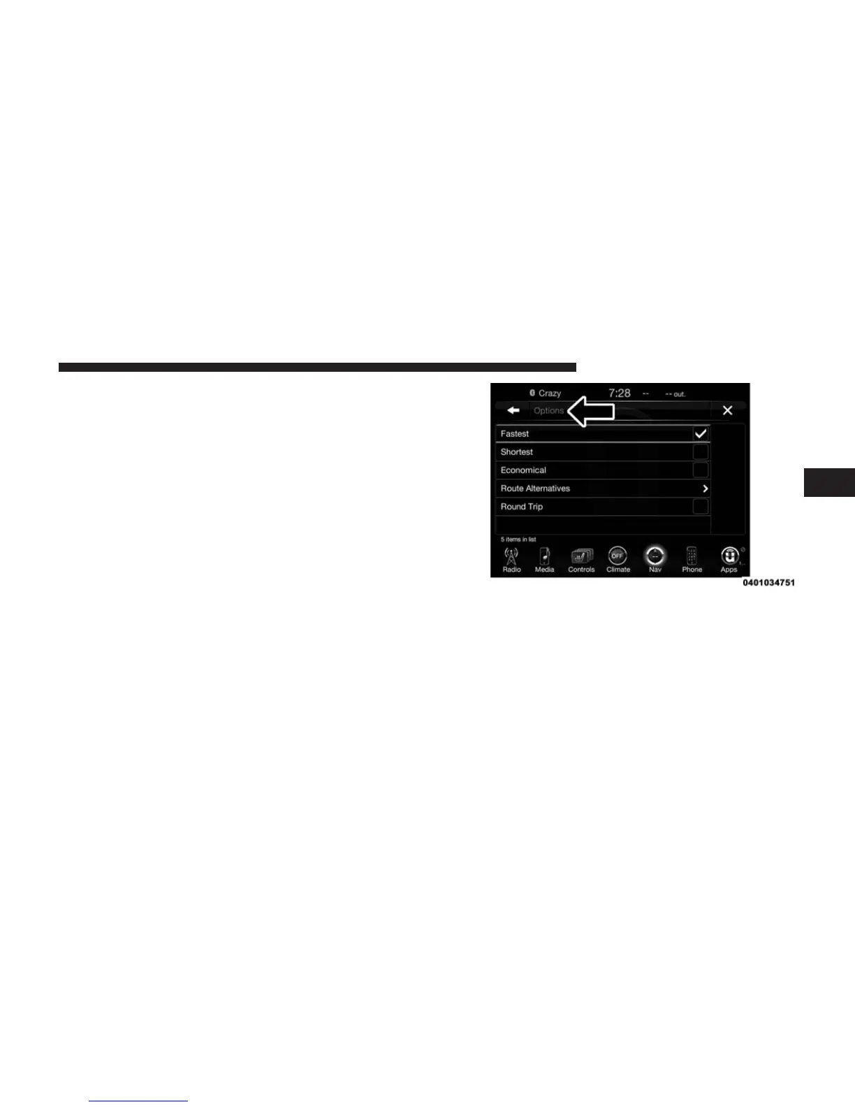 screen to display a list of options to alter your route. To