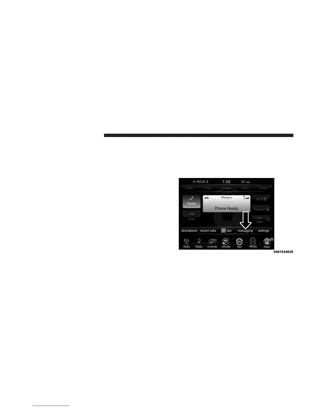 the menu bar of the radio to see the main Phone screen.