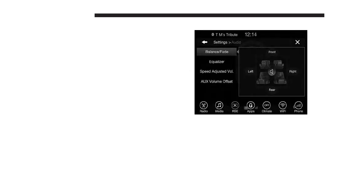 Press the “Balance/Fade” button on the touchscreen to