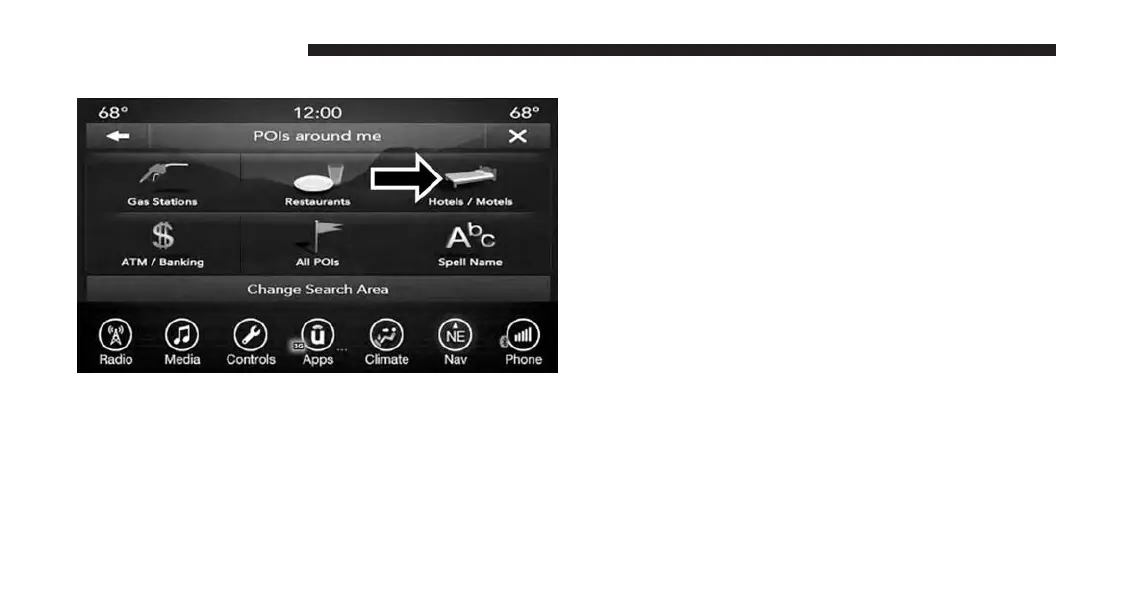 2. Press the “Hotels/Motels” button on the touchscreen.