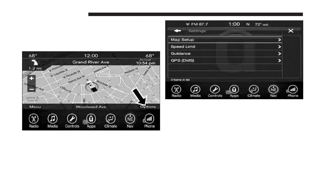 • Map Setup — Press this button on the touchscreen to