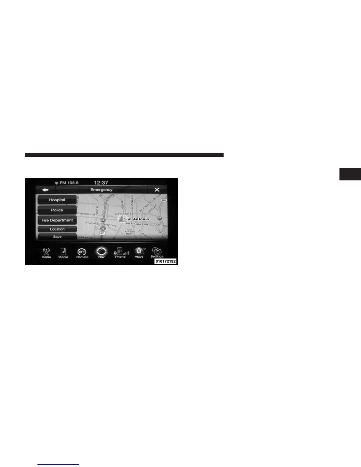 location, touch Emergency from the Nav Main Menu and