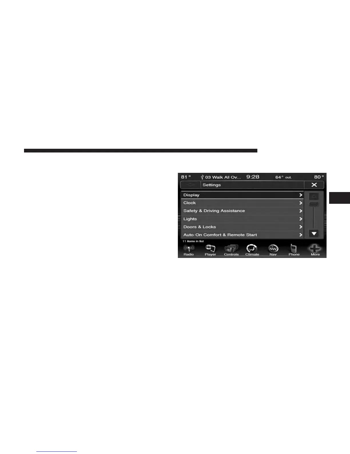 Uconnect Touch 8.4 - More & Settings; More Main Menu; Settings Main Menu