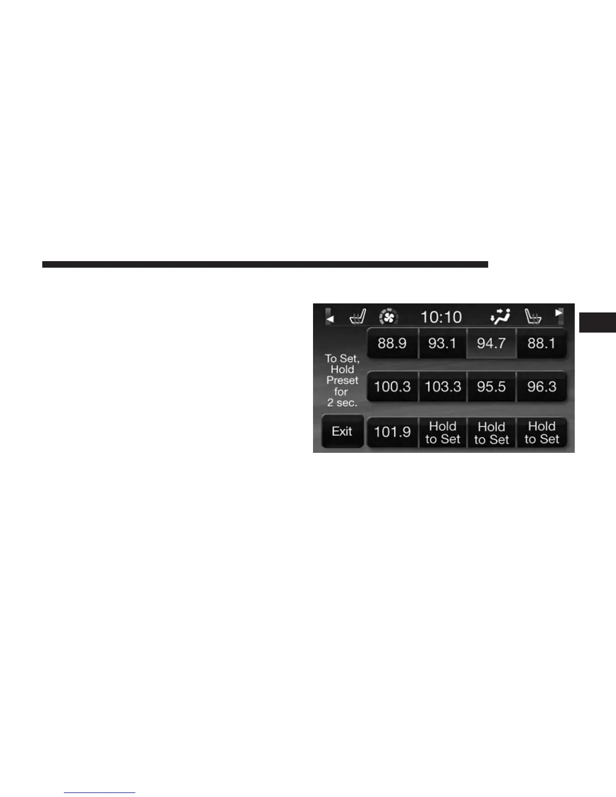 The Radio stores up to 12 presets in each of the Radio