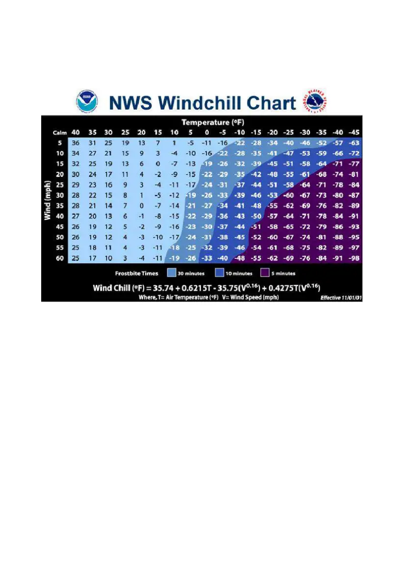 1. Temperatures less than 4.4°C(40°F), the wind chill is