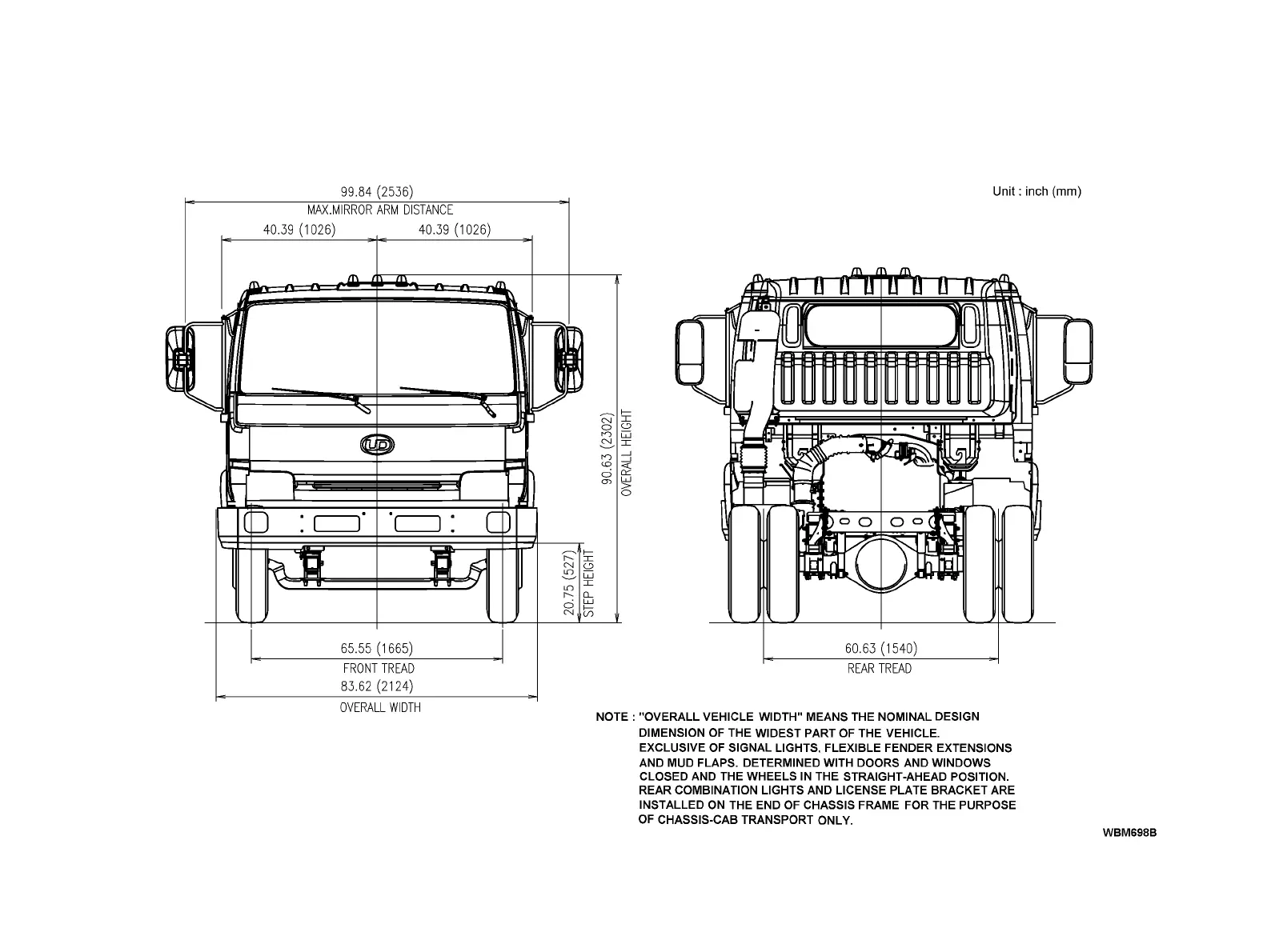 UD Trucks UD2000 - Chassis Diagram Front and Rear View