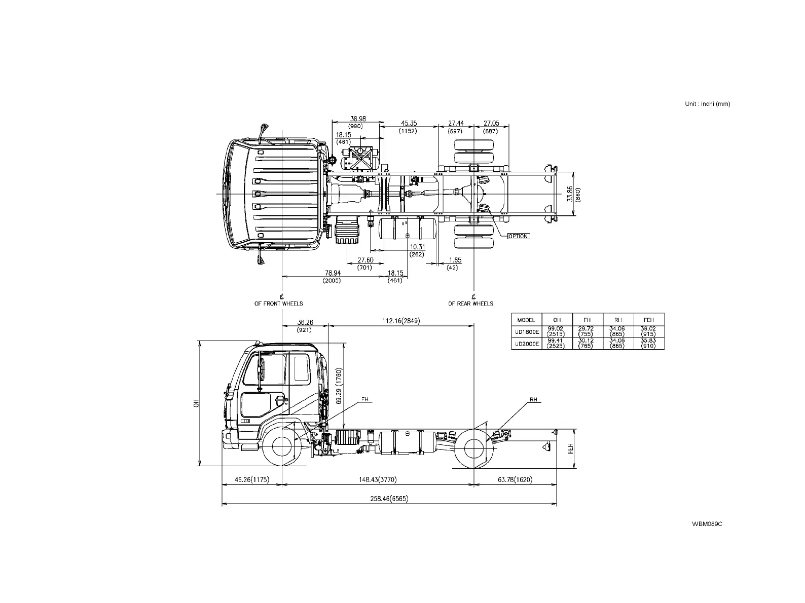UD Trucks UD2000 - Chassis Diagram Plan and Side View