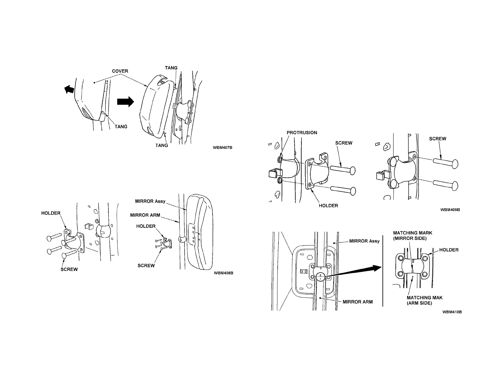 • Align the matching marks on the mirror holder(s) and the mirror