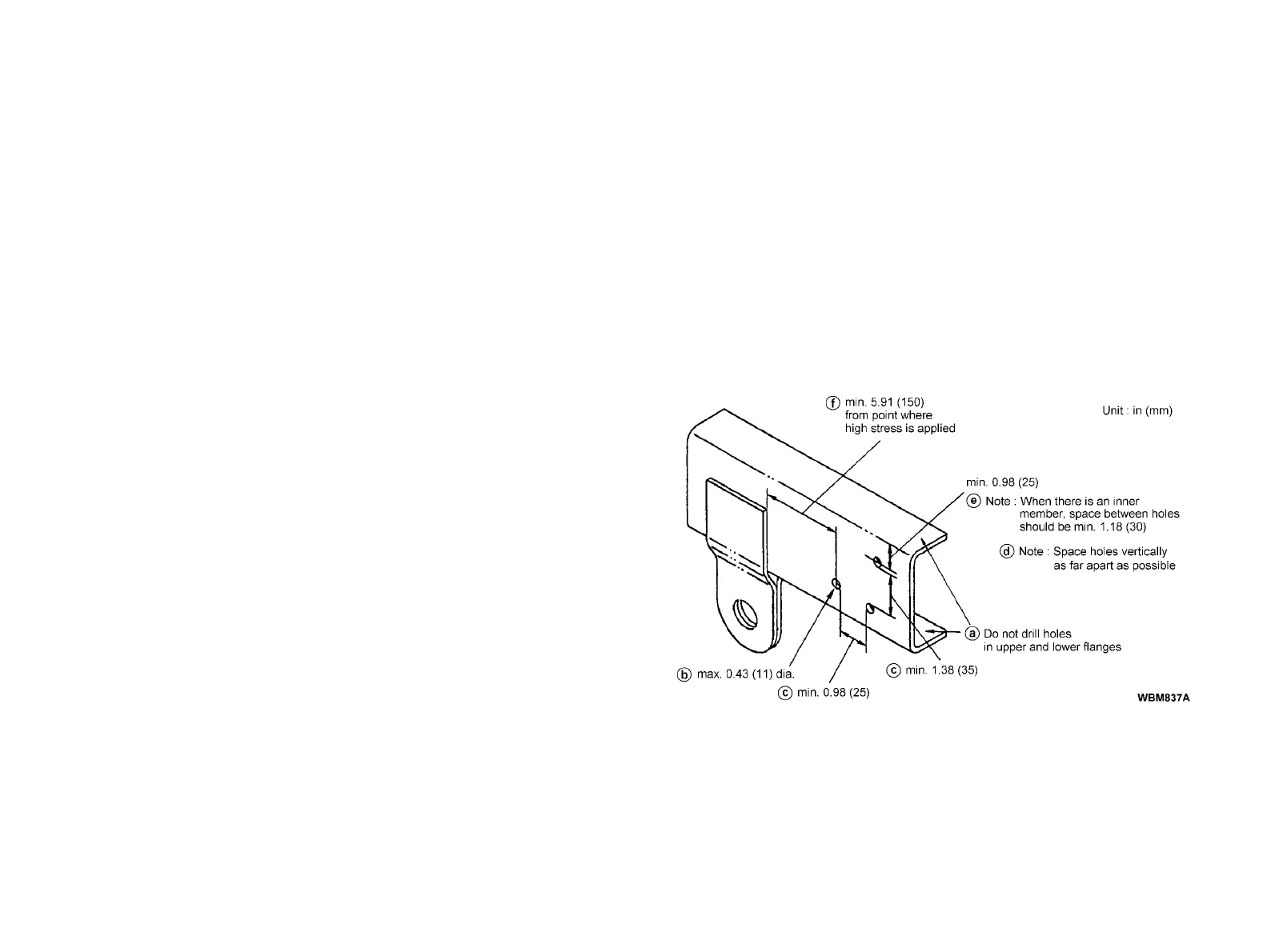 f Holes should be at least 5.91 in (150 mm) from spring brackets and