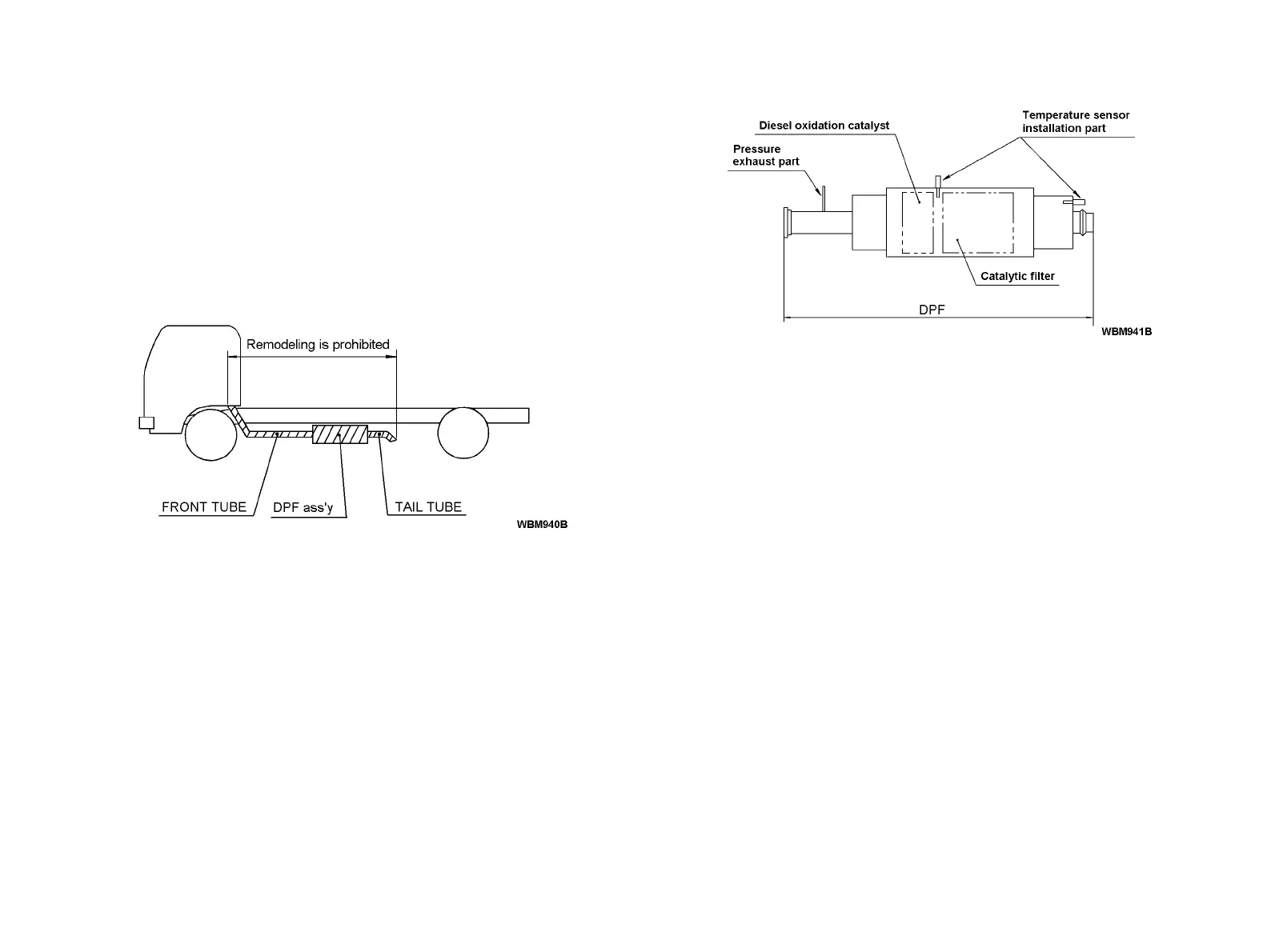 • The DPF is equipped with the exhaust pressure pipes and exhaust