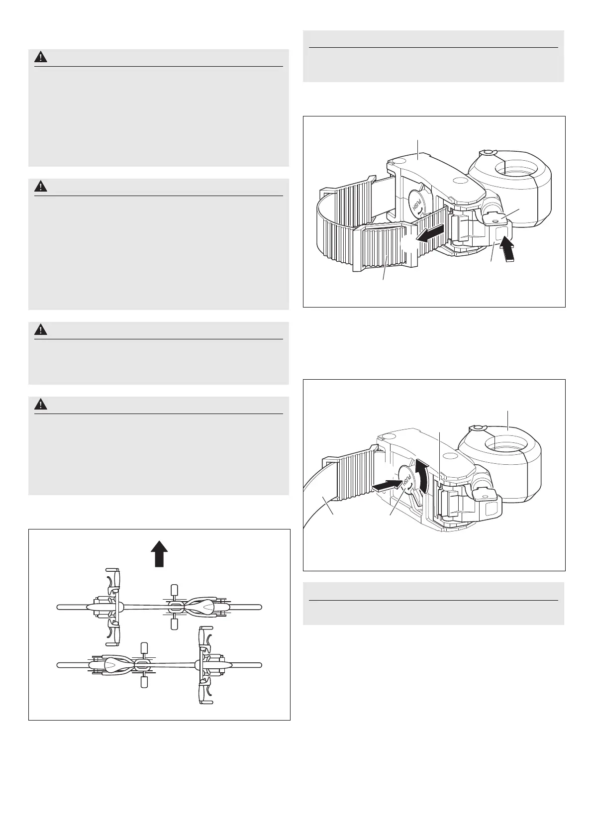3. Press the tensioner (25) (arrow I) and pull out the lashing