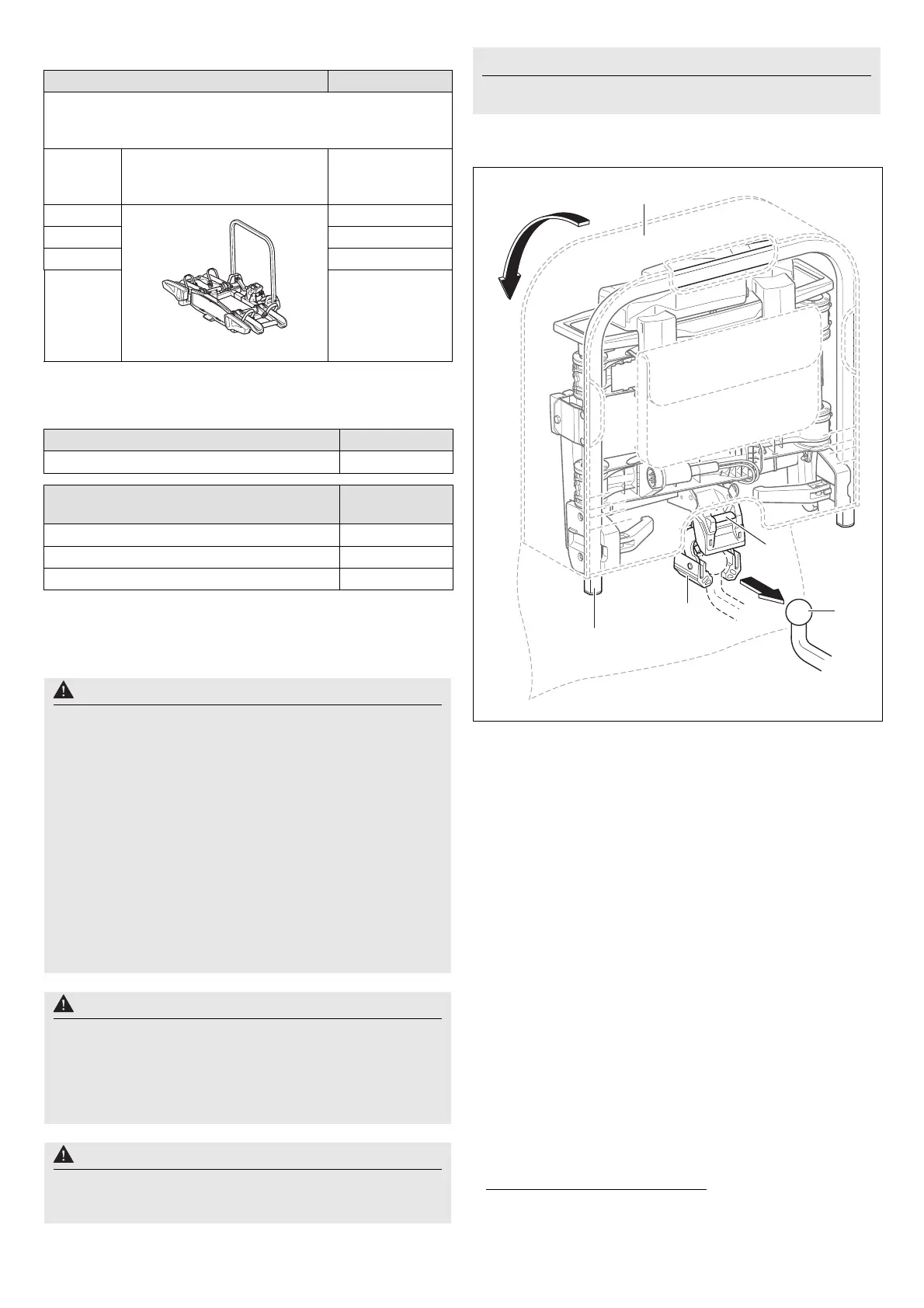 4. Abata el portabicicletas (1) hacia abajo hasta que la palanca de