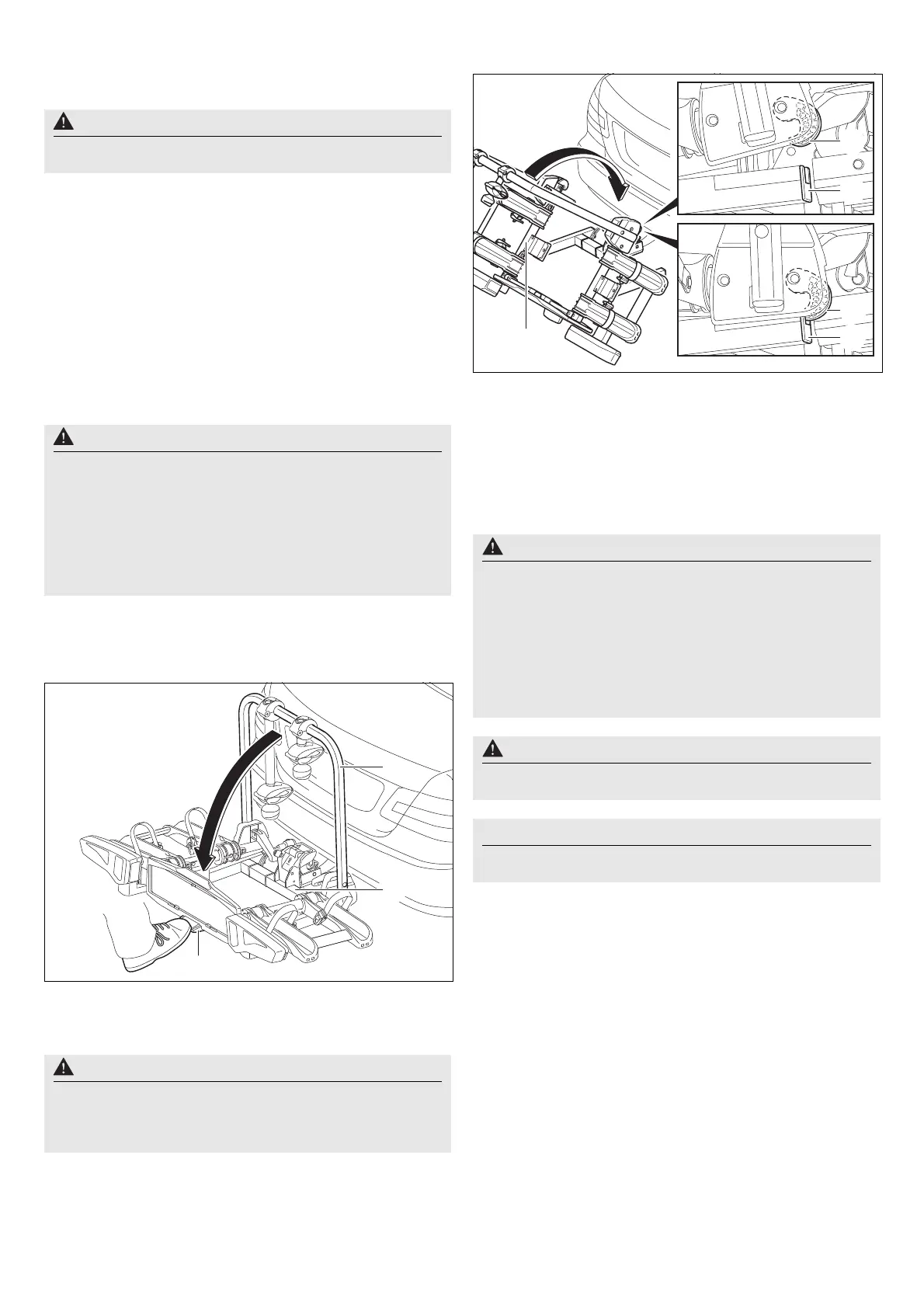Opletten dat de fietsdrager tijdens het terugklappen met beide