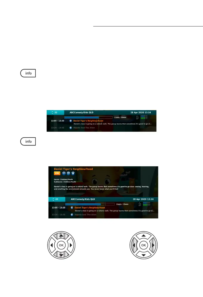 While on Live Satellite TV, press the Info button to present the INFORMATION