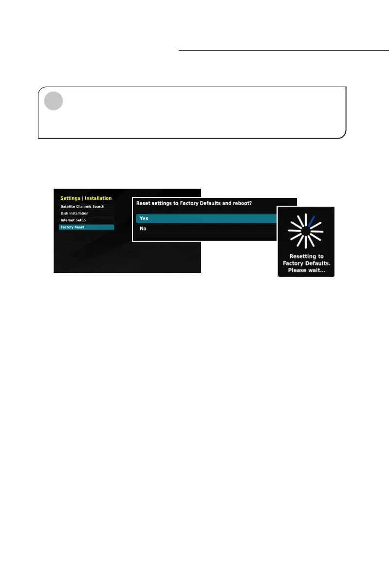 Settings and LNB settings). The Set Top Box will return to the default state. Do not