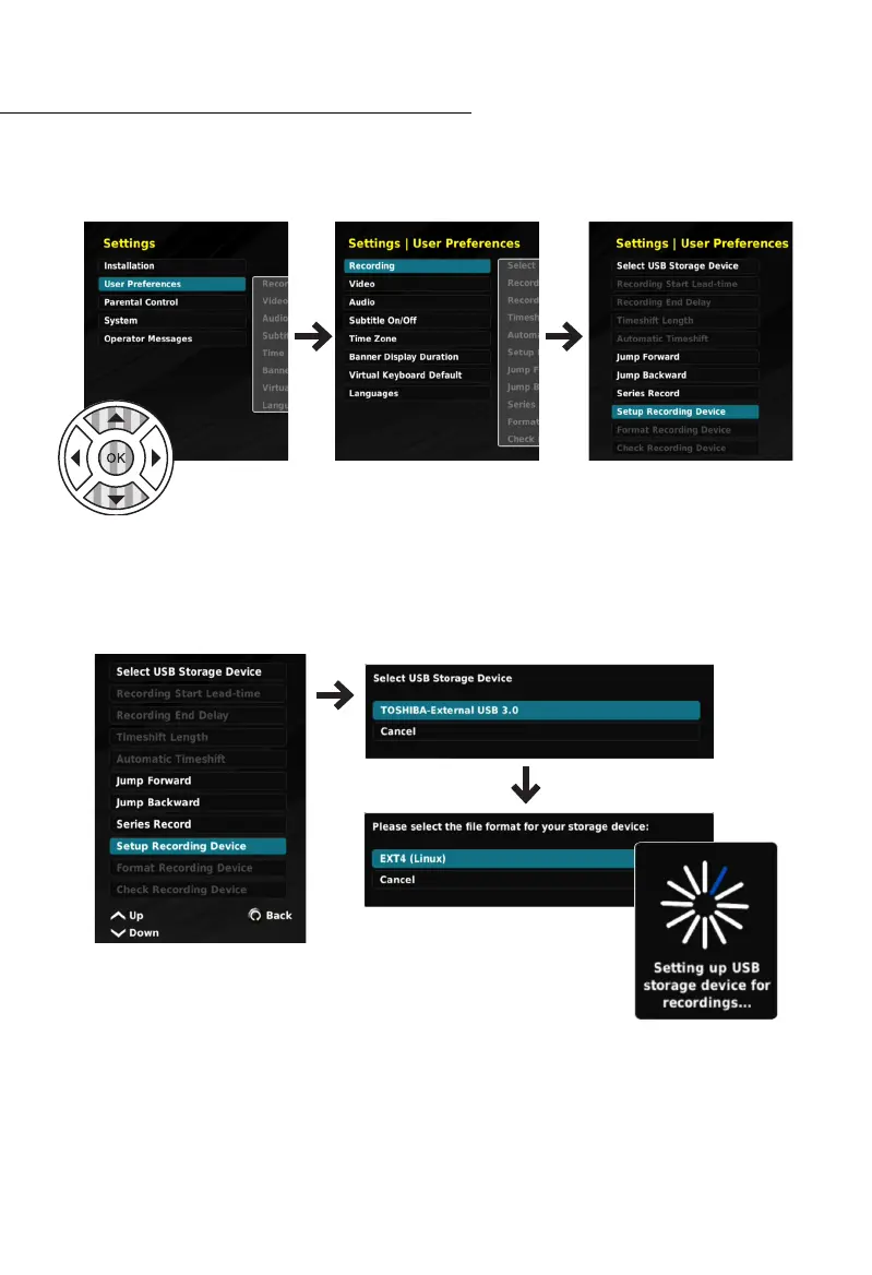 Select “SETUP RECORDING DEVICE” and press the OK button. Select the External HDD you