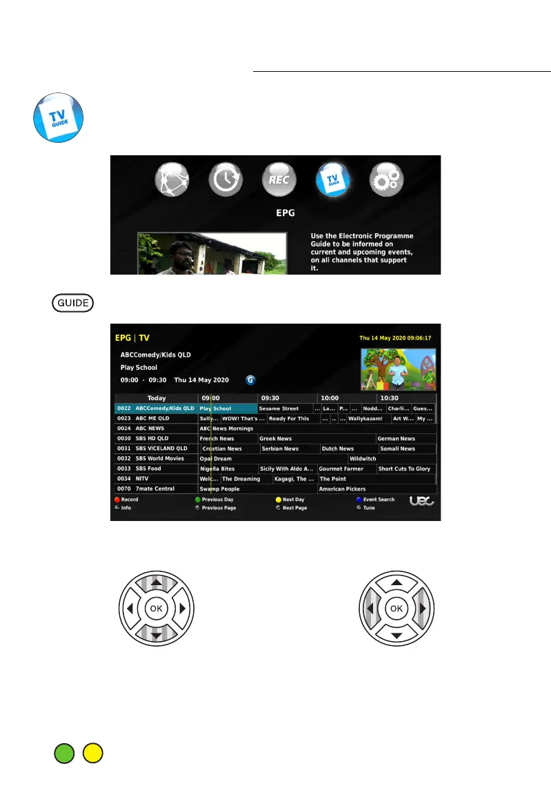 QUICKLY ACCESS EPG: Press the GUIDE button on the remote control to directly