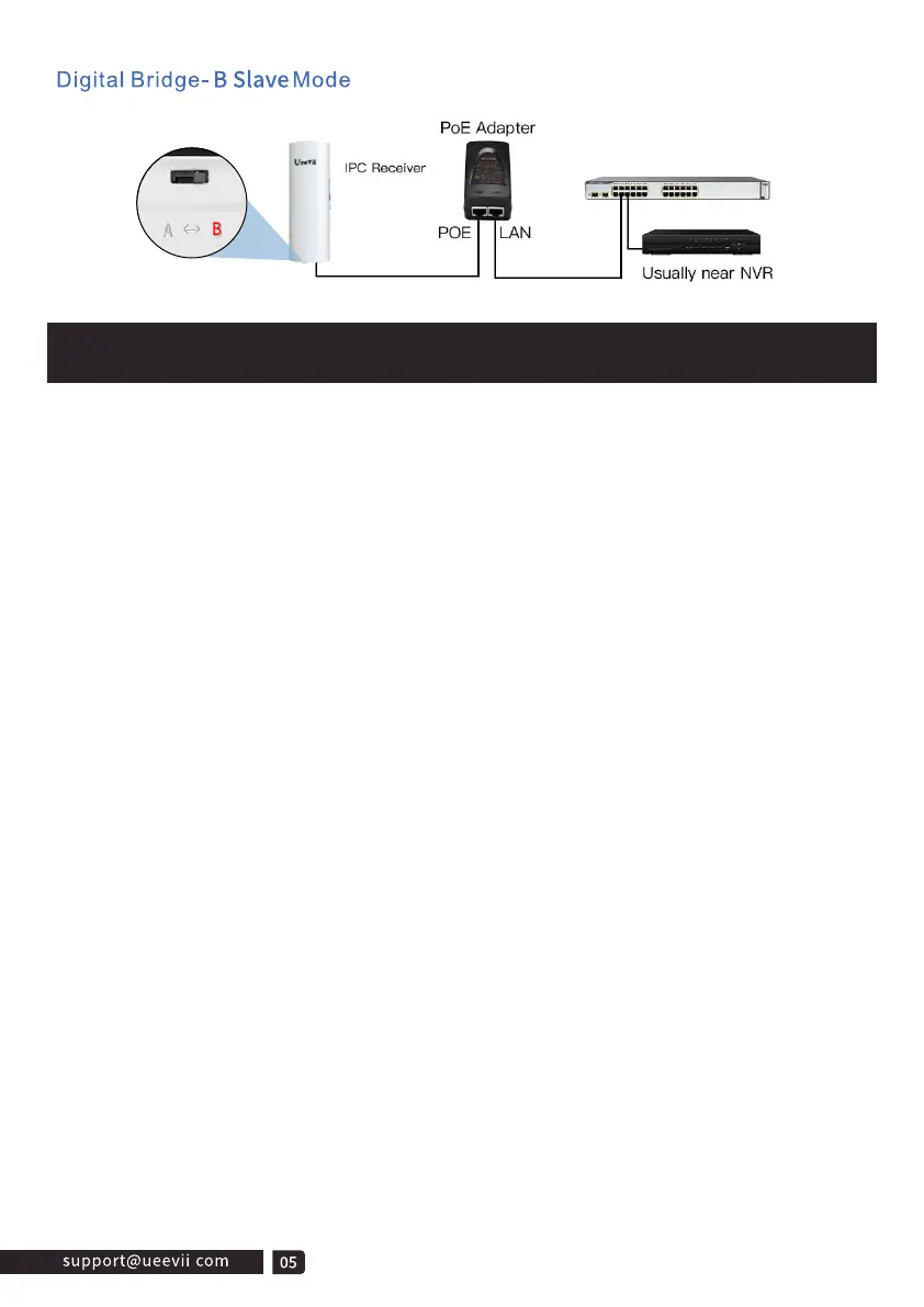 1. Switch one unit to A (Master Bridge) and one unit to B(Slave Bridge);