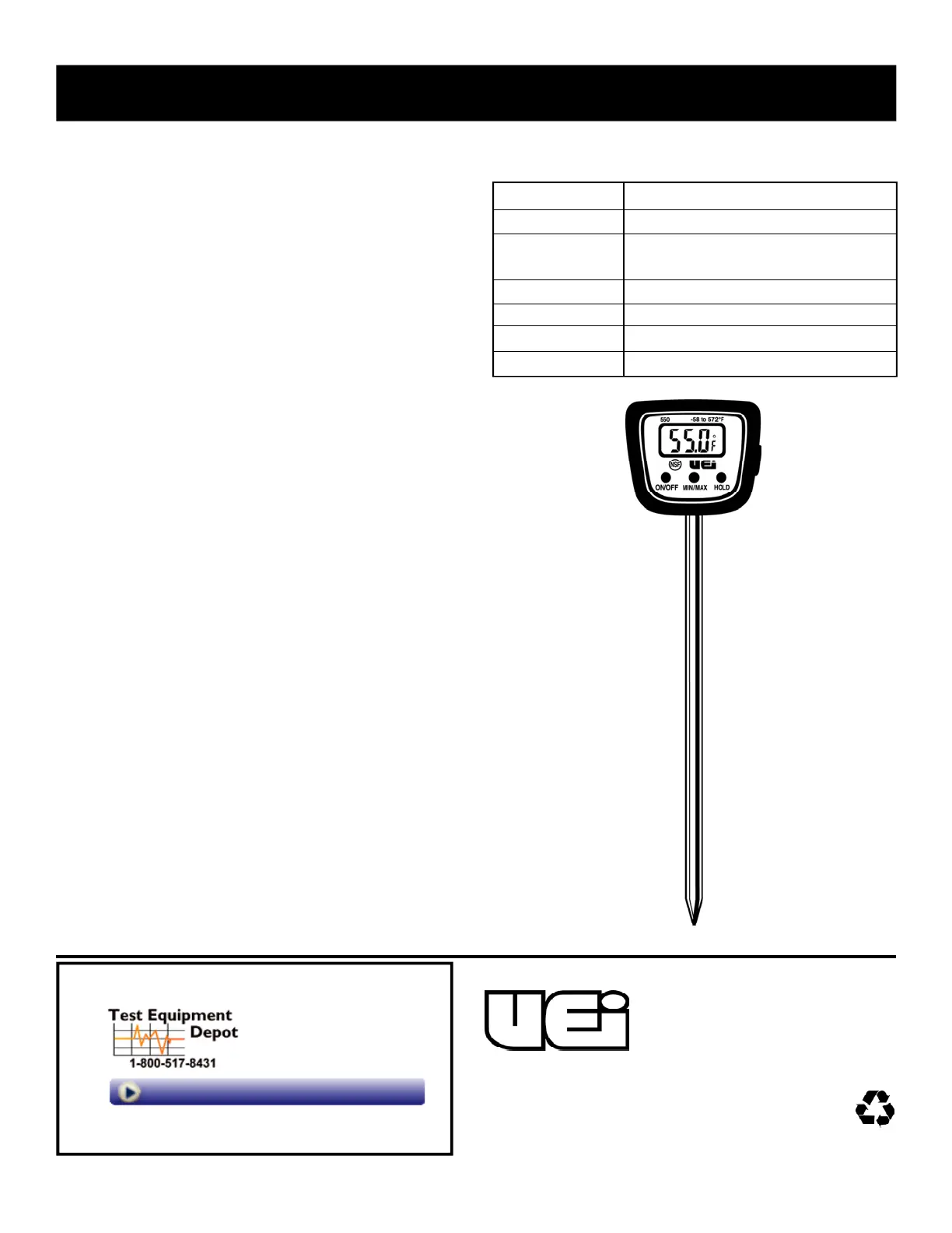 Resolution: ±0.1˚F for -19.04 to 199.9 otherwise ±1˚F from
