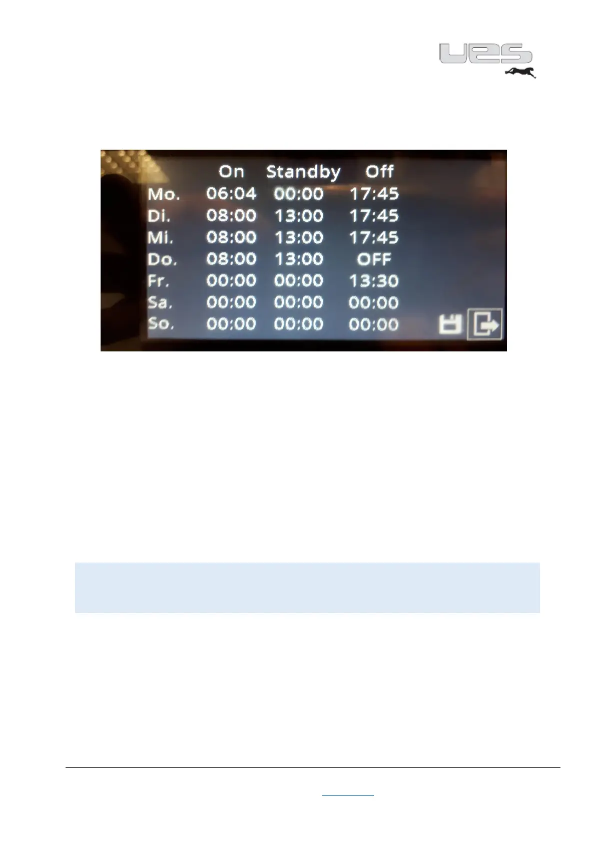 • Enter the daily switch-off time in the Off column. The system will switch itself off at the set time.