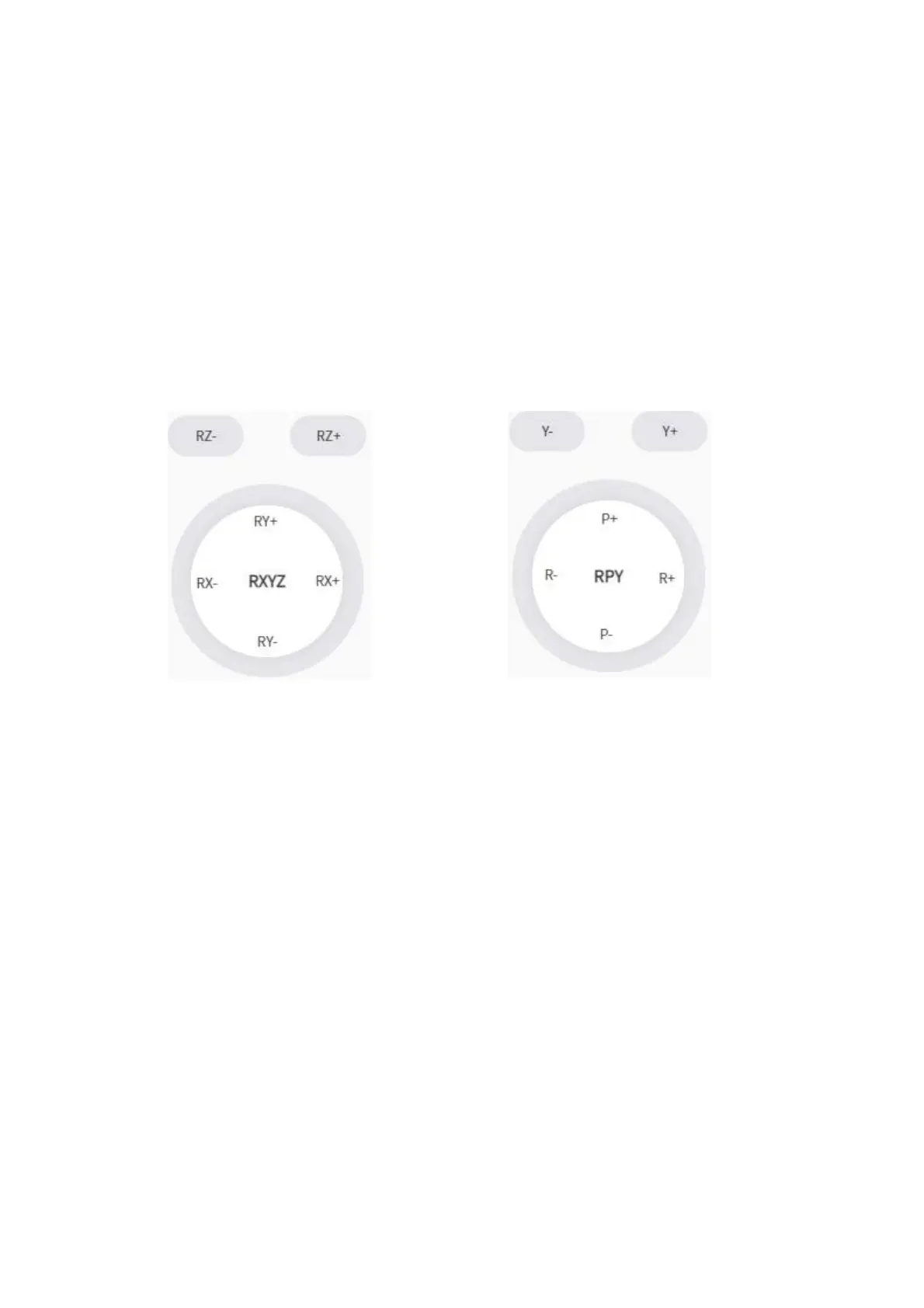 button is displayed as Rx/Ry/Rz; the right side is the R/P/Y control, and