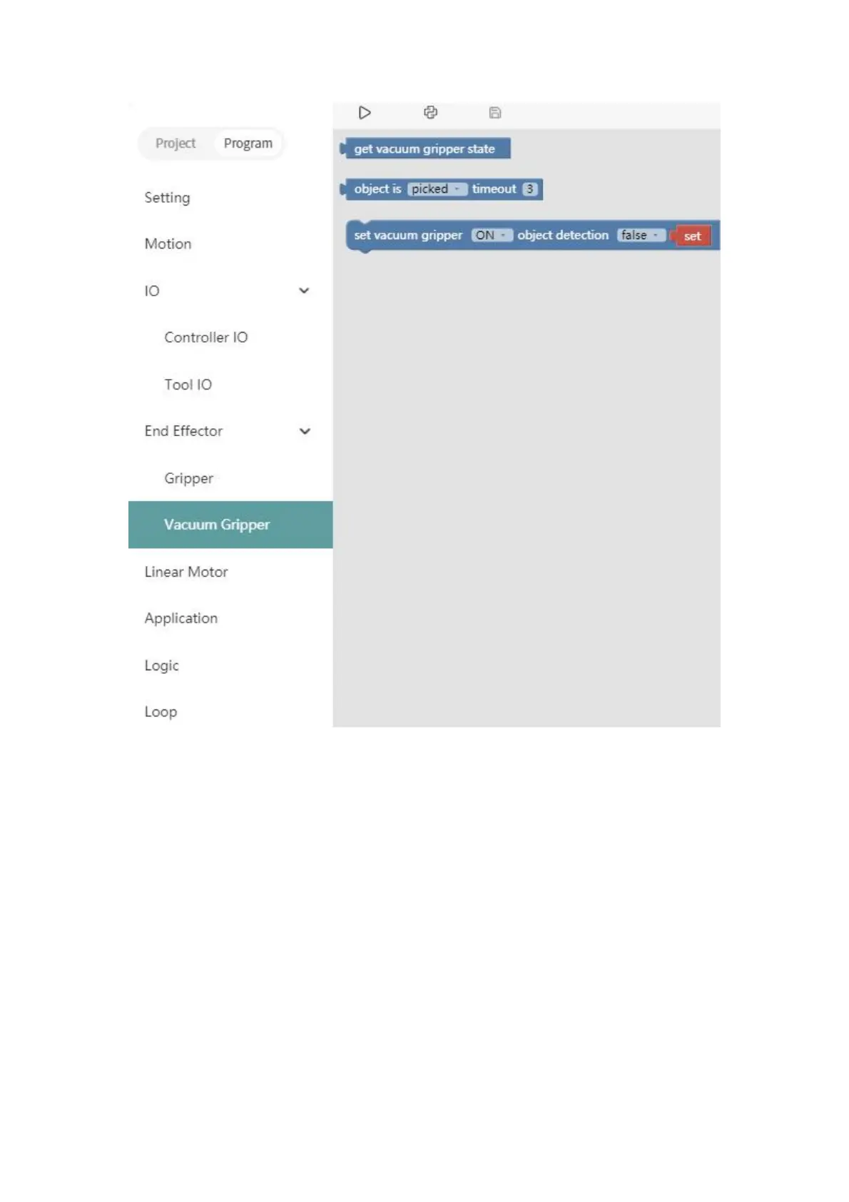 ● Set the position and the opening and closing speed of the gripper.