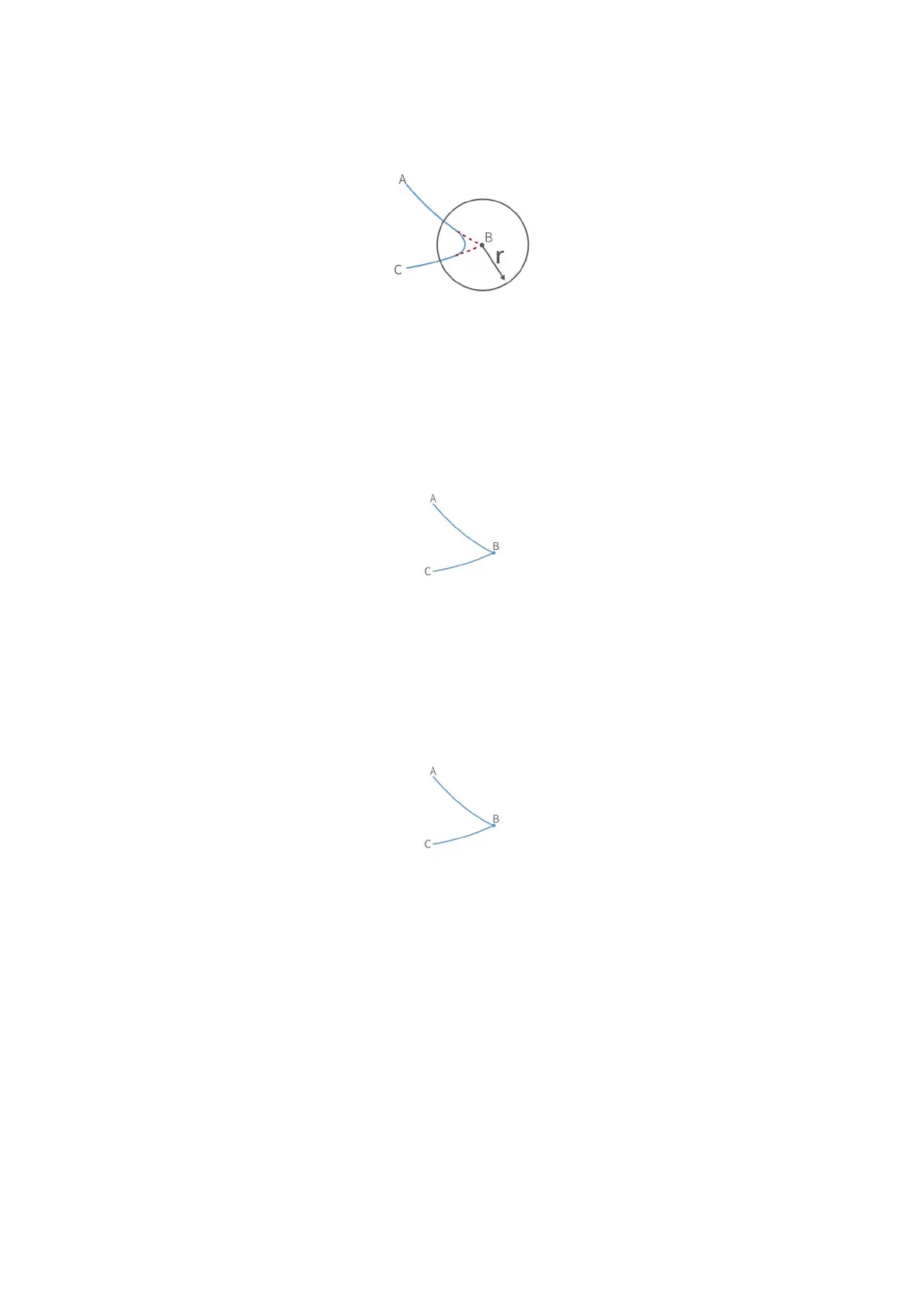 (2) Radius = 0. There is no arc transition at the turn, it will be a sharp turn