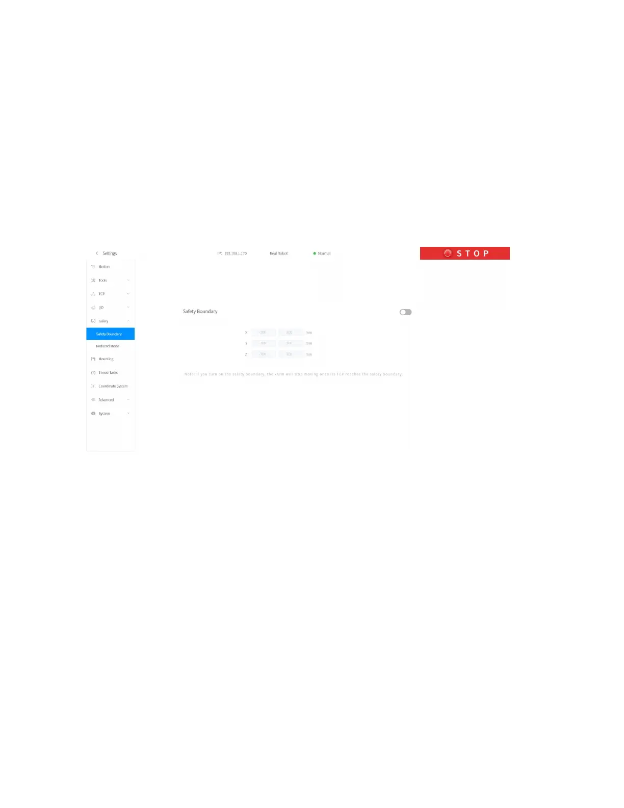 robotic arm exceeds the set safety boundary, the robotic arm will stop