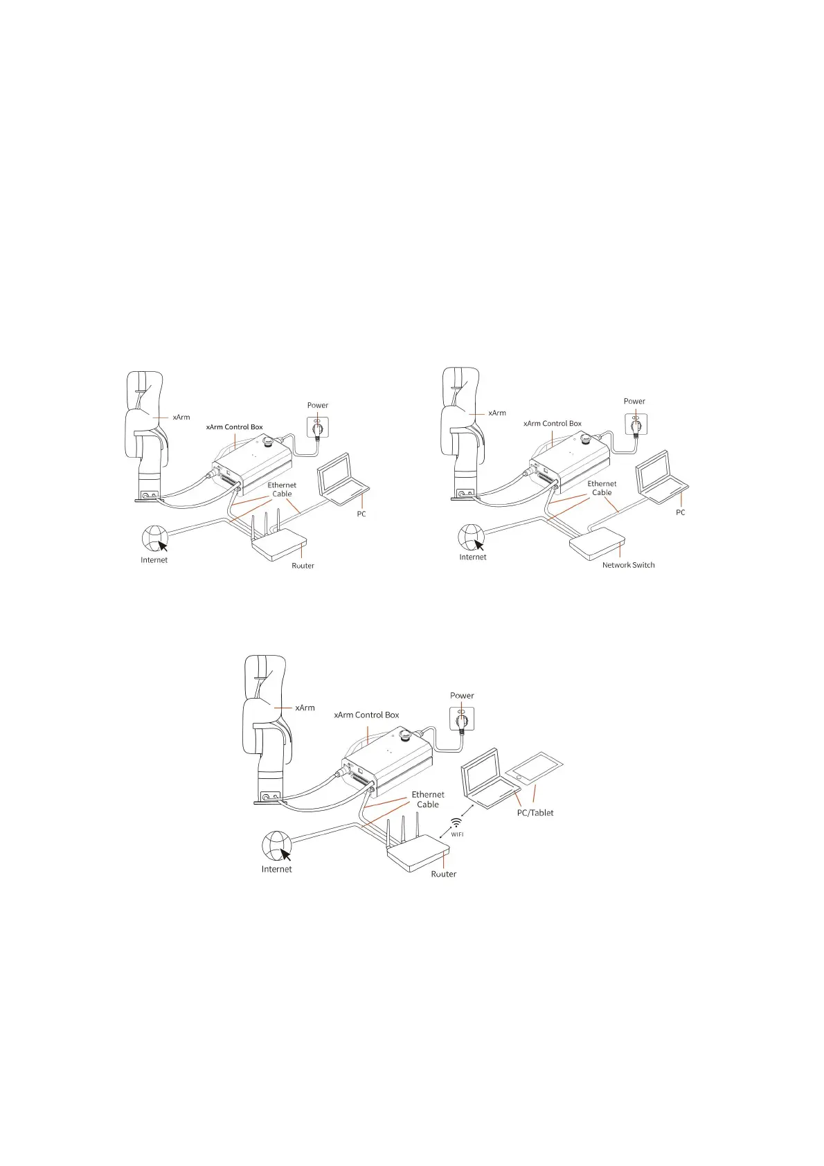 (1)The control box, PC and router are connected by ethernet cable (2) The control box, PC and network switch are connected