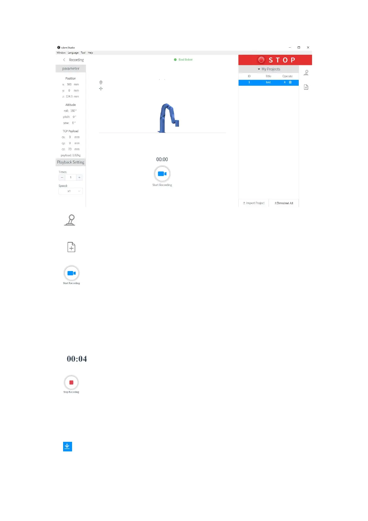 starting recording, be sure to pay attention to the load state of the robotic
