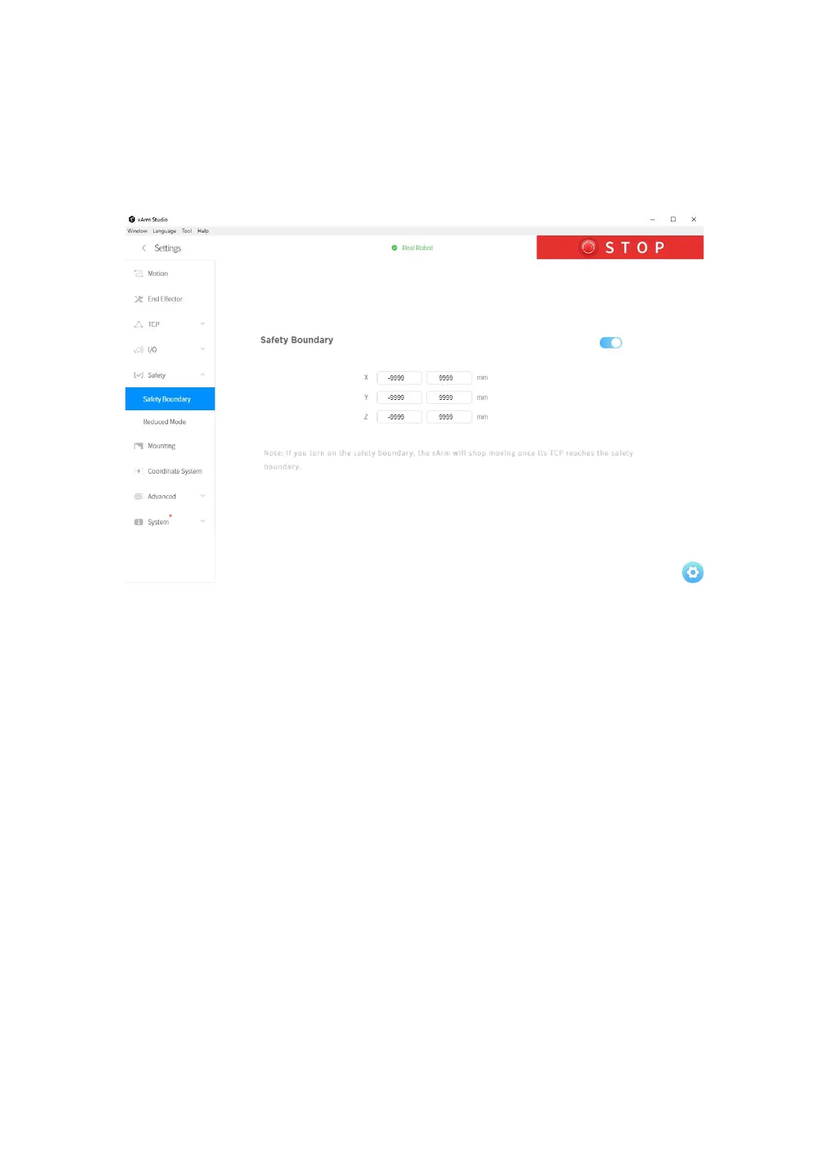 set safety boundary, the robotic arm will stop moving. The user can then adjust the